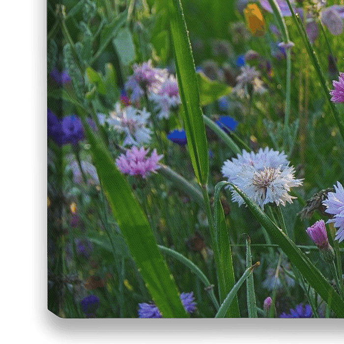 Bestelle dieses Blumen-Wandbild bunte Blumenwiese im Sommer von Tanja Voigt als Reproduktion auf Leinwand, Alu-Dibond, als Poster, Fototapete oder Acrylglasbild.