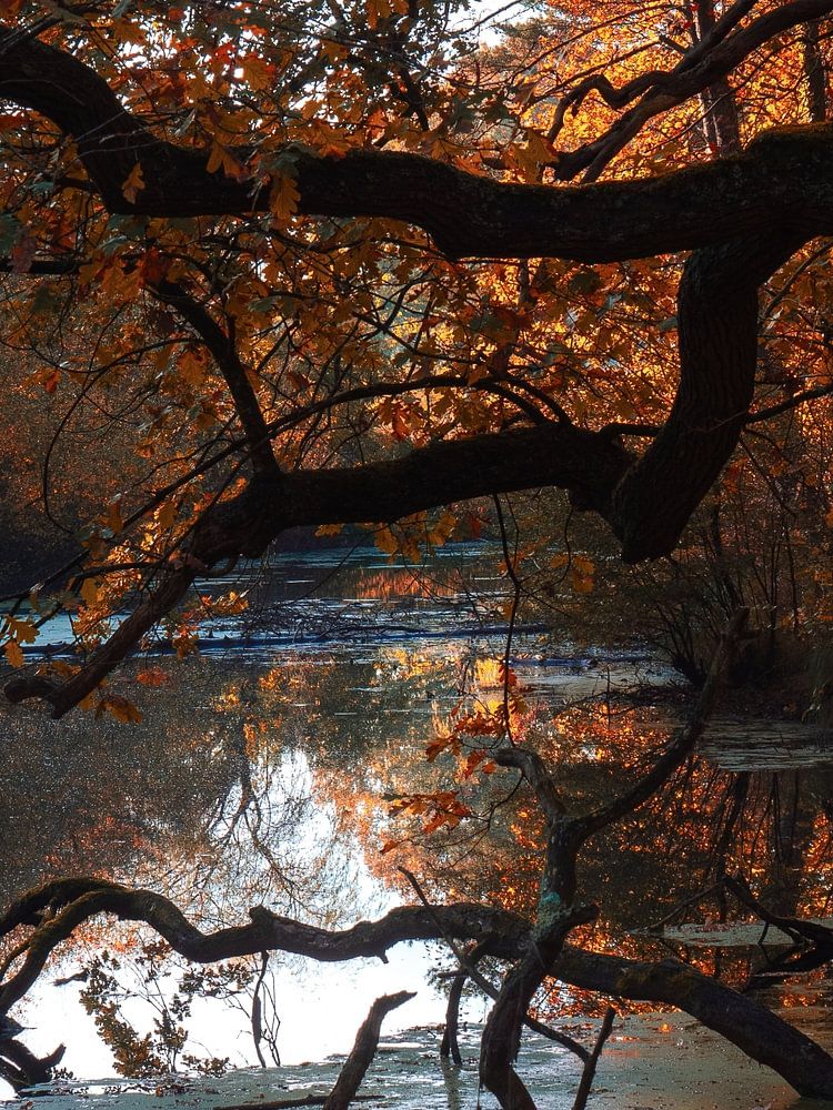 das Licht auf den Blättern, die wunderschön gold-orange gefärbt sind, gibt einen schönen Effekt