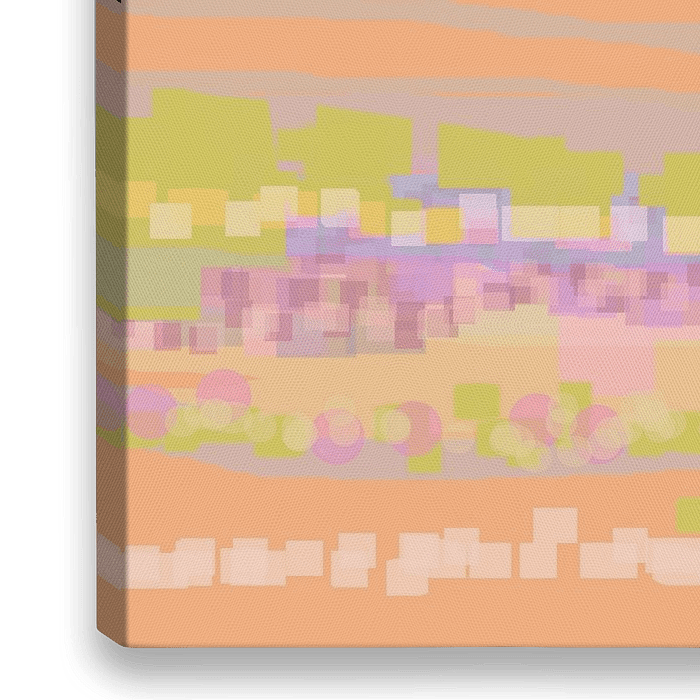 Bestelle dieses Landschafts-Wandbild geometrische Landschaft mit Rechtecken und Kreisen von Claudia Gründler als Reproduktion auf Leinwand, Alu-Dibond, als Poster, Fototapete oder Acrylglasbild.