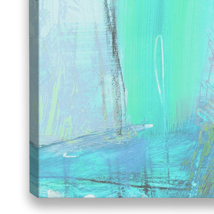 Bestelle dieses abstrakte Wandbild geometrisches Chaos 11 in Türkis von Claudia Gründler als Reproduktion auf Leinwand, Alu-Dibond, als Poster, Fototapete oder Acrylglasbild.