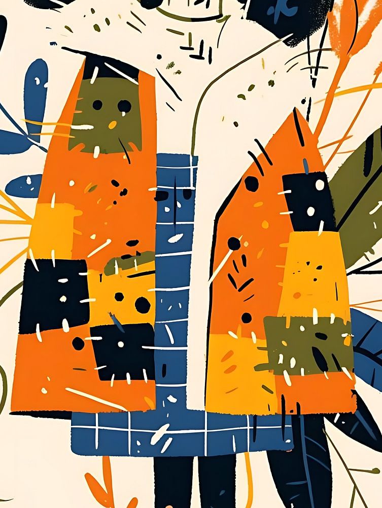 Das farbenfrohe Mädchenporträt für ein Kinderzimmer ist flach gezeichnet und von einem Sommergefühl umgeben. Das Mädchen hat ein fröhliches Lächeln und verspielte Locken im Haar. Sie trägt einen gelben Mantel. Der Hintergrund ist von einer fröhlichen und lebendigen Atmosphäre erfüllt. Dieses Porträt bringt eine frische und positive Energie in jedes Kinderzimmer.