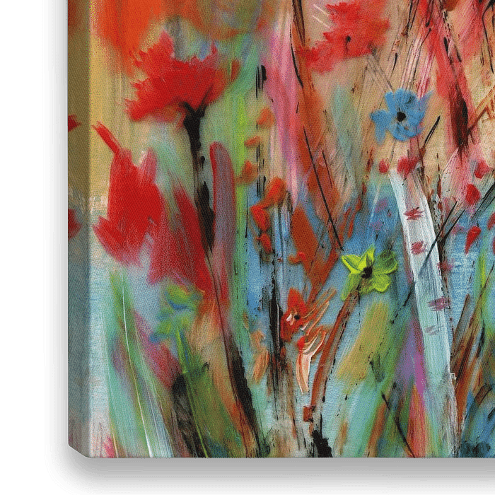 Blumenbild mit Mohn - Acrylmalerei mit grafischen Elementen.