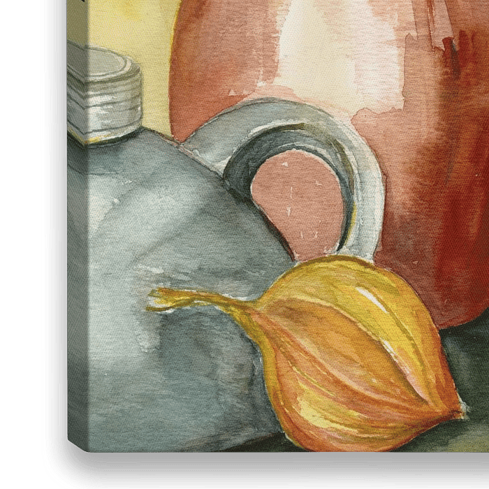 Stillleben Aquarell mit Krügen und Zwiebeln...ein Bild für die Küche