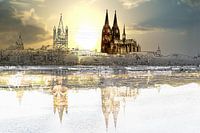 kölner dom mit Vollmond, gespiegelt
