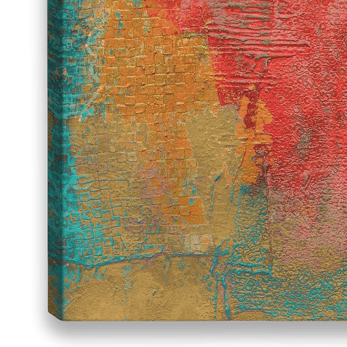 Bestelle dieses moderne Wandbild marode Art ROT BEIGE GRÜN von Claudia Gründler als Reproduktion auf Leinwand, Alu-Dibond, als Poster, Fototapete oder Acrylglasbild.