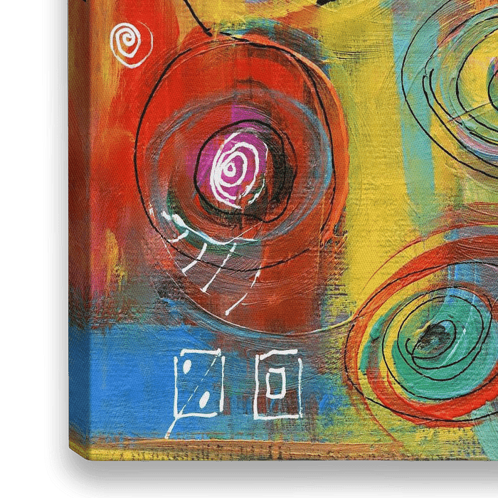 Spiralen und Kreise in kräftigen Blau, Gelb und Grün Tönen werden attraktiv in Szene gesetzt...