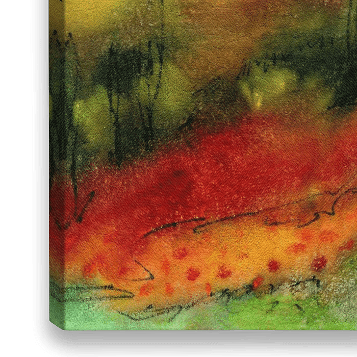 Bestelle dieses Landschafts-Wandbild mysticism red - leuchtende Landschaft von Claudia Gründler als Reproduktion auf Leinwand, Alu-Dibond, als Poster, Fototapete oder Acrylglasbild.