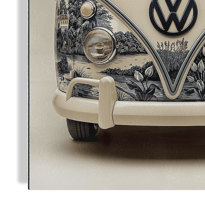Bestelle das digitale Kunst Bild vor einem Oldtimer-Volkswagen von Margriet Hulsker als Reproduktion auf Leinwand, Alu-Dibond, als Poster, Fototapete oder Acrylglasbild.