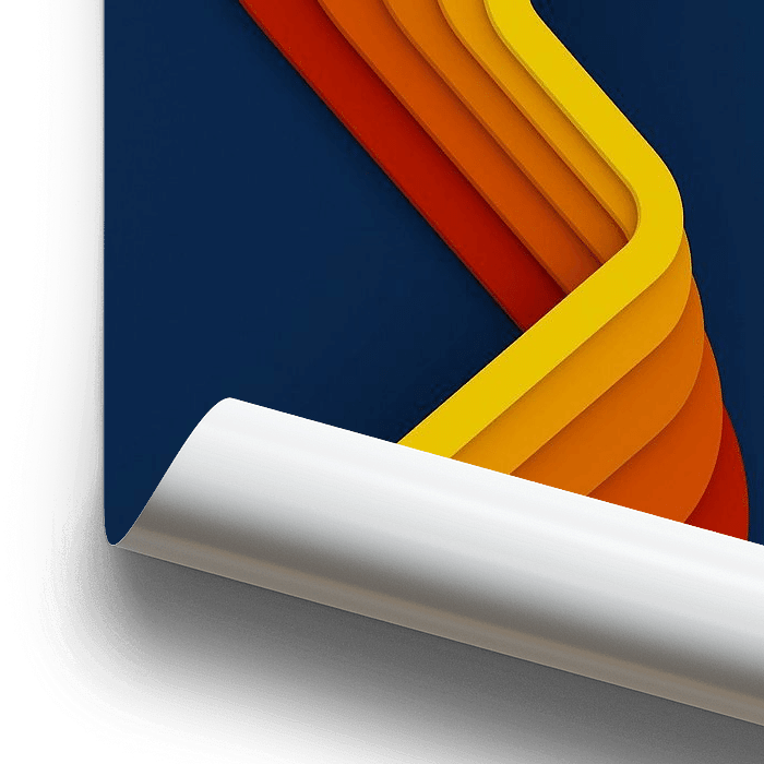 Abstrakte S-Formen, welche in Ebenen übereinander liegen. Farbverlauf von Gelb nach Rot auf blauem Untergrund.