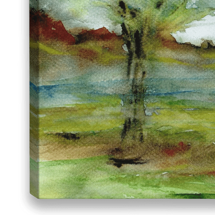 Bestelle dieses Landschafts-Wandbild weites Land mit Baum von Claudia Gründler als Reproduktion auf Leinwand, Alu-Dibond, als Poster, Fototapete oder Acrylglasbild.