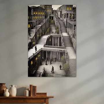 Digitale optische illusie beelden in de stijl van bijvoorbeeld Escher of Dali