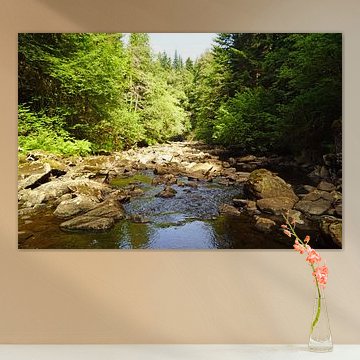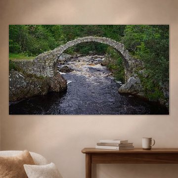 Steinbrücke und kleiner Wasserfall in Carrbridge