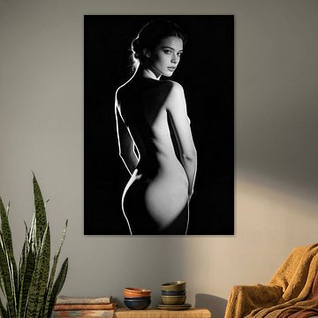 Elegantes Schwarz-Weiß-Porträt einer nackten Frau von Matthias Hauser