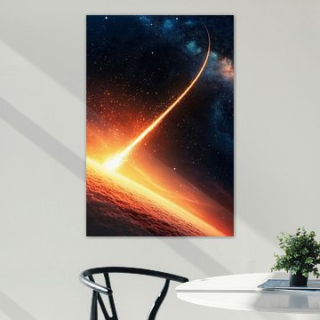 Glühender Meteorit über der Erde von Poster Art Shop