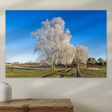 Bäume mit Raureif und Pferdekoppel im Winter in Biestow von Rico Ködder