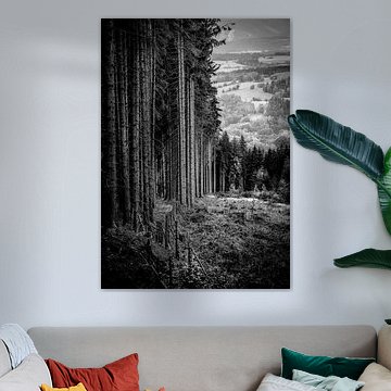 Neblige Waldlandschaft mit Zaun von Peter Bolman