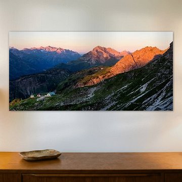 Berglandschaft "Alpenglühen über die Mindelheimer Hütte" von Coen Weesjes