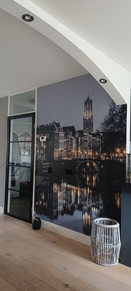 Kanalmotive mit Abendlicht passen gut in Räume, in denen du entspannen möchtest - etwa im Schlafzimmer, Leseecke oder Flur. Die Ruhe und die warmen Lichter schaffen eine angenehme Atmosphäre. Ein Beispiel ist Domtoren den Sand-Brücke und Alten Kanal vom Fluss Vecht in Utrecht zu sehen, das durch seine ruhige Wasserspiegelung und sanfte Beleuchtung besticht.