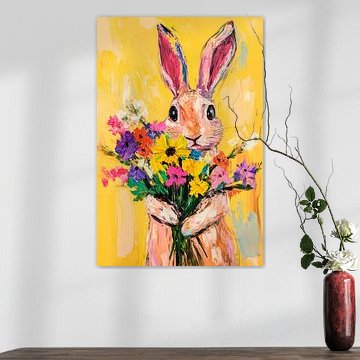 Hübsches Kaninchen mit Blumen von Poster Art Shop
