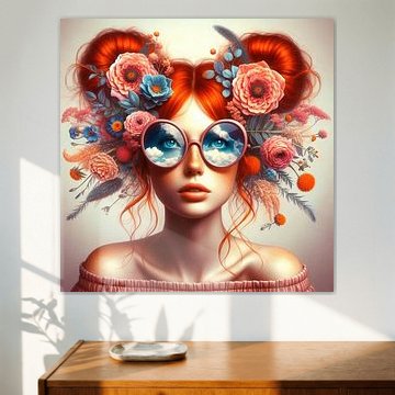 Brillen verleihen Porträts das gewisse Etwas. Sie verbergen, lenken den Blick, setzen starke Akzente. In dieser Kollektion tragen die Figuren oft runde, verspiegelte Modelle, die Landschaften, Sonnenuntergänge oder schwimmende Goldfische spiegeln - ein Fenster zur Fantasie. Die Farbwelten aus Teal, Bronze und Salbeigrün passen ideal zu ruhigen, modernen Interieurs, in denen Persönlichkeit und Ruhe zusammentreffen. Strand-Vibes IV von Mirjam Duizendstra zeigt, wie verspielt und träumerisch Brillen wirken können.