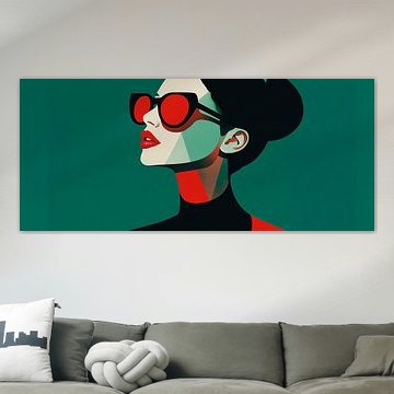 Brillen verleihen Porträts das gewisse Etwas. Sie verbergen, lenken den Blick, setzen starke Akzente. In dieser Kollektion tragen die Figuren oft runde, verspiegelte Modelle, die Landschaften, Sonnenuntergänge oder schwimmende Goldfische spiegeln - ein Fenster zur Fantasie. Die Farbwelten aus Teal, Bronze und Salbeigrün passen ideal zu ruhigen, modernen Interieurs, in denen Persönlichkeit und Ruhe zusammentreffen. Strand-Vibes IV von Mirjam Duizendstra zeigt, wie verspielt und träumerisch Brillen wirken können.