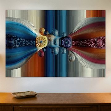 Abstraktes Mandala in blau-rot-gelben Tönen von Maurice Dawson