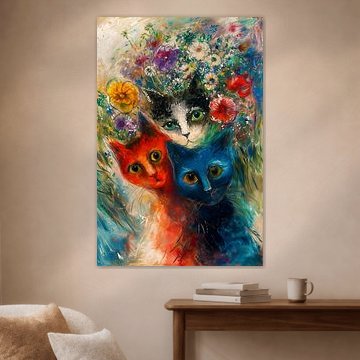 Fotokunst und Gemälde von Katzen für das Wohnzimmer bieten eine einzigartige Möglichkeit, die Liebe zu diesen eleganten Tieren zu zeigen und gleichzeitig eine gemütliche, einladende Atmosphäre zu schaffen. Von detaillierten Nahaufnahmen, die die verzaubernden Augen einer Katze einfangen, bis hin zu spielerischen Szenen von Katzen in ihren täglichen Abenteuern, bringt jedes Bild ein Stück der unabhängigen und geheimnisvollen Natur der Katzen ins Haus. Diese Kunstwerke, von realistischen Darstellungen bis zu abstrakten Interpretationen, bieten eine breite Palette an Stilen und Farben, die zu jeder Inneneinrichtung passen. Katzenkunst in Ihr Wohnzimmer zu integrieren, ist nicht nur eine Hommage an die Schönheit und Anmut dieser Tiere, sondern bereichert auch Ihren Wohnraum mit künstlerischem Flair und Persönlichkeit.