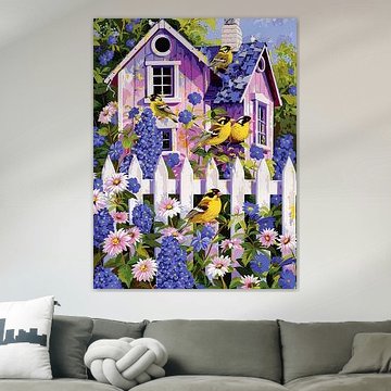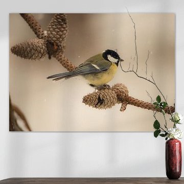 • Kundenfoto: Kohlmeisen auf Blütenzweig von Ohara Koson, auf Leinwand