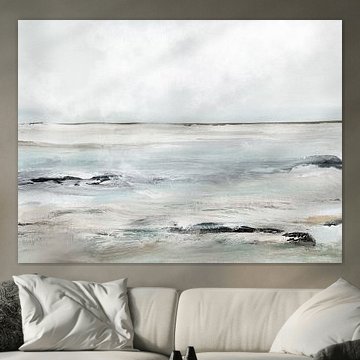 Blaugraues abstraktes Gemälde – Ruhiges Kunstwerk von Joriali Abstrakte Kunst