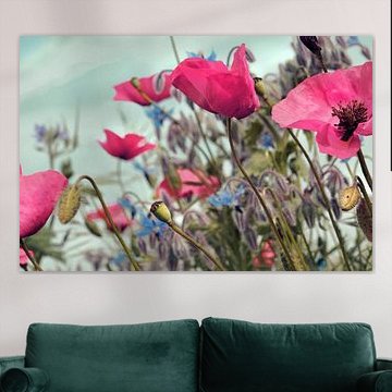Mohnblumen kommen auf jedem unserer hochwertigen Materialien zur Geltung. Ob du dich für Leinwand, Acrylglas oder Fototapete entscheidest - jedes Material hebt die besonderen Details und Farben hervor.