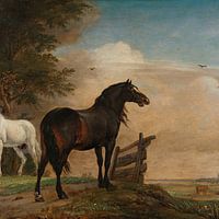 Zwei Pferde auf der Weide an einem Zaun, Paulus Potter