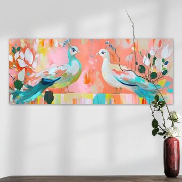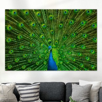 Fotokunst und Gemälde von Pfauen für das Wohnzimmer