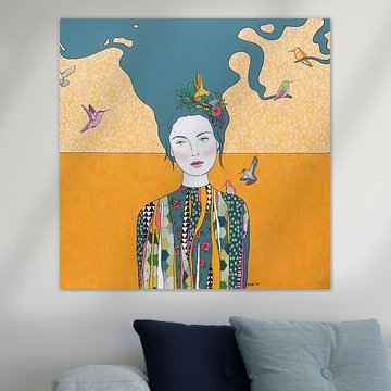Frauenmalerei | Patchwork Poise von Blickfänger Gemälde