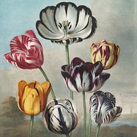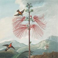 Hochformatige Pflanzenillustrationen mit aufstrebenden Formen ziehen den Blick nach oben und geben Räumen eine elegante Höhe. Diese Wirkung eignet sich besonders für schmale Wandflächen neben Türen oder zwischen Fenstern. Ein gutes Beispiel ist Große blühende empfindliche Pflanze, Robert John Thornton mit seiner schlanken, aufragenden Komposition.