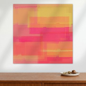Abstrakte Landschaft. Farbblöcke in Neon-Pink, Gelb, Koralle. von Dina Dankers