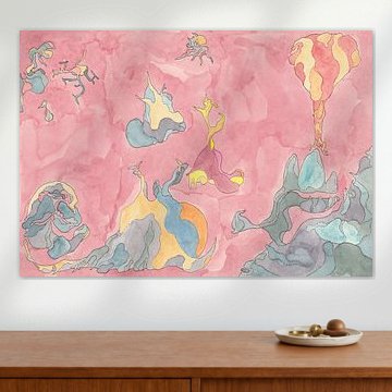 Influencer-Traumland – Surreales und verspieltes Porträt in Pastelltönen von Joriali Fine Art