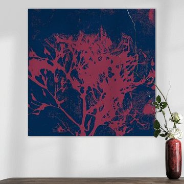 Abstrakte botanische Kunst. Organische Formen in Dunkelblau und Weinrot. von Dina Dankers