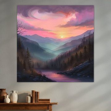 Pastellfarbener Sonnenuntergang über den Smokey Mountains von DesignByDessie