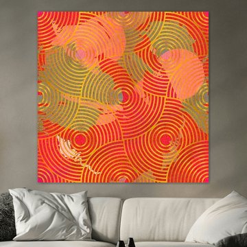 Japanisches geometrisches Retro-Goldmuster in Rosa, Grau und Rot von Dina Dankers