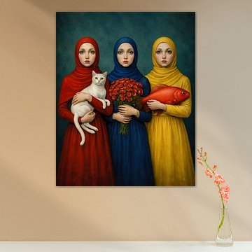 Kunstwerke mit lebendigen Blumen und Tieren bringen Energie in Räume, in denen du dich kreativ oder entspannt fühlst. Sie passen gut ins Arbeitszimmer oder den Wohnbereich. Das Motiv in Frida con amigos mit seiner eleganten Ausstrahlung kommt in ruhigen Räumen besonders zur Geltung.