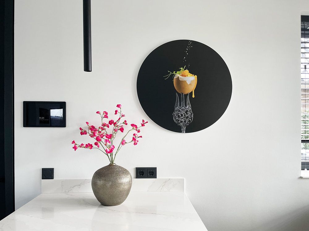 Schwarze Kunstwerke wirken besonders kraftvoll, wenn du sie mit hellen Wänden und natürlichen Materialien kombinierst. Die mysteriöse und ruhige Ausstrahlung der Motive kommt neben warmem Holz, sanften Textilien in Beige oder Taupe und grünen Pflanzen besonders gut zur Geltung. Auch in einer Gallery Wall kannst du die Kollektion Schwarz gezielt einsetzen: Kombiniere schwarz-weiße Fotografien mit digitalen Kunstwerken oder Illustrationen in ähnlichen Tönen, um eine einheitliche und zugleich spannende Wandgestaltung zu schaffen. Mit der richtigen Beleuchtung holst du das Maximum aus jedem einzelnen Kunstwerk heraus.
