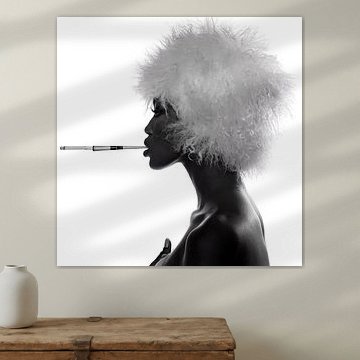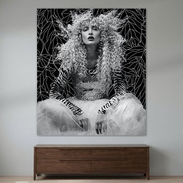 Strichzeichnung einer Frau mit einer Blume von Gelissen Artworks
