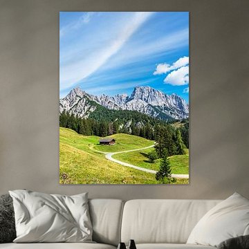 Blick auf die Litzlalm mit Hütte in Österreich von Rico Ködder