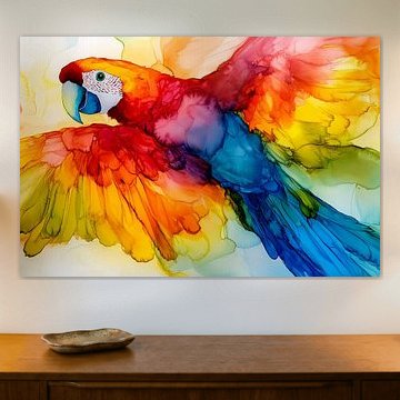 Bunte Papageien-Aquarellmalerei von Imperial Art House