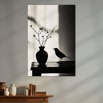 Eleganter minimalistischer Pfau auf einem Zweig von Art & Soul Creations